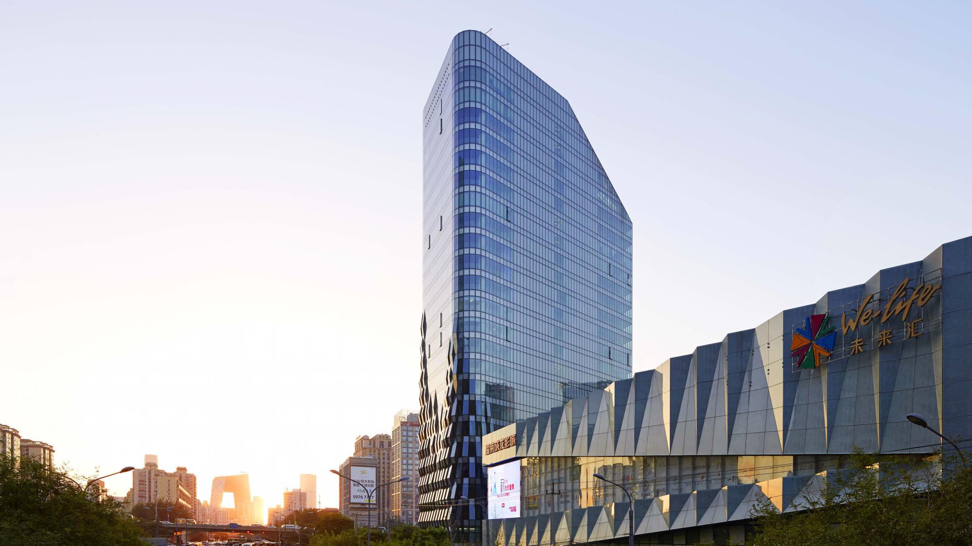 地处北京四环,京棉新城的设计成功在大规模开发与城市交通动脉、人行道路之间实现了一种人性化的平衡。该项目包括两栋写字楼,由裙房购物中心相连接。