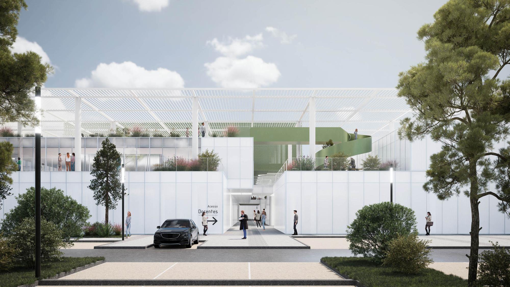 柯路建筑为埃武拉大学健康中心的竞赛提出了一种植根于社区和空间开放性的全新学术建筑模式。设计以分散式村落为概念,统一于一顶连续的廊架之下,形成一系列带遮荫的庭院、露台和非正式聚会空间,将学习场景延展到公共领域。该项目荣获世界建筑节(WAF)的未来建筑奖(WAFX Prize),展示了建筑如何促进可达性、互动和共享使用,增强大学与周边社区的联系。